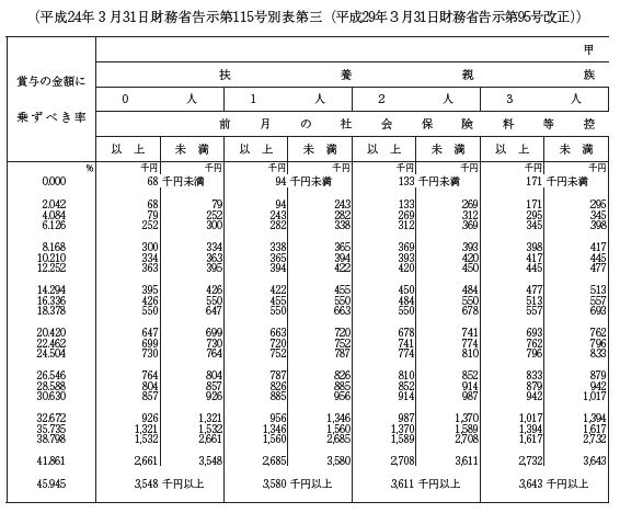 賞与に対する源泉徴収税額の算出率の表1